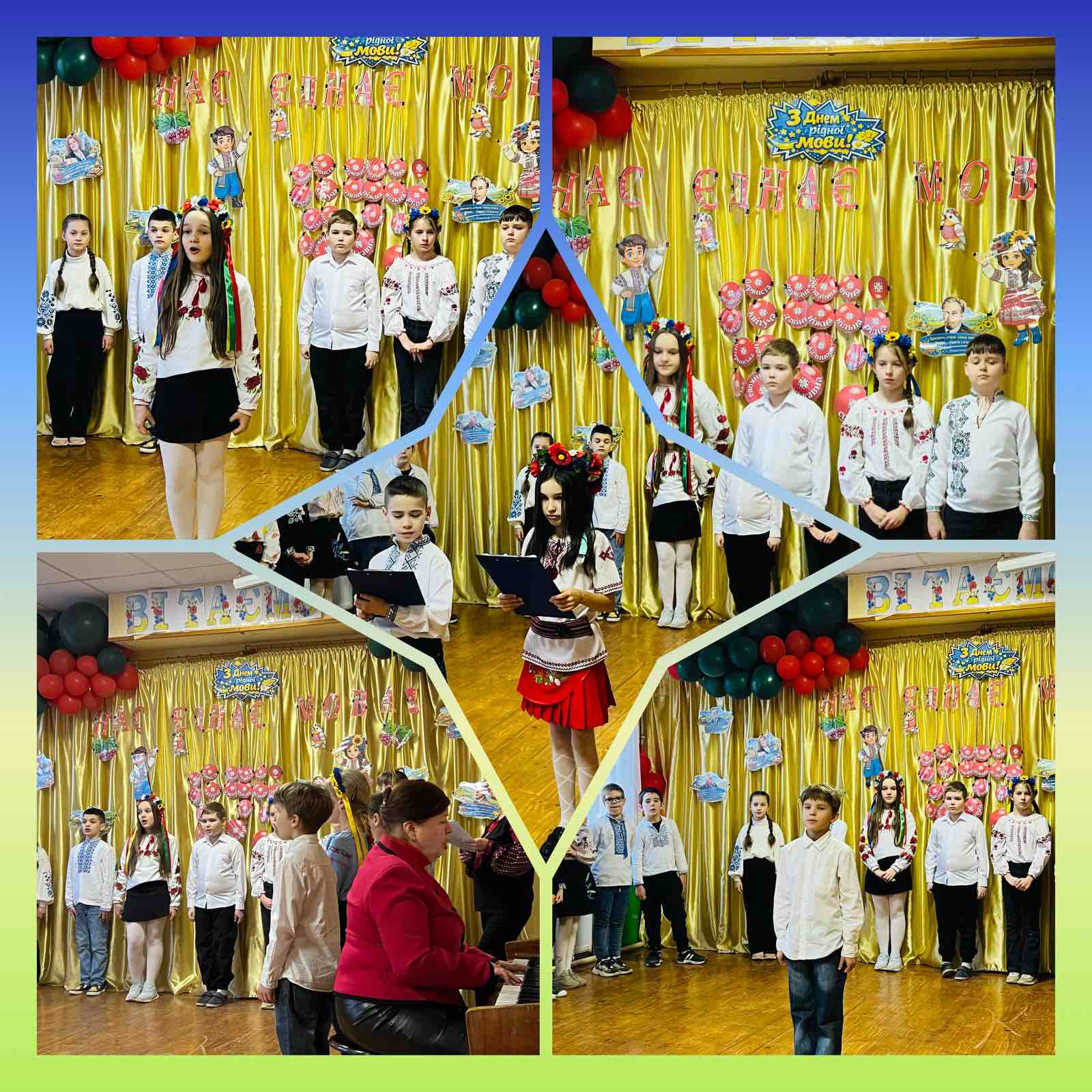 Учні розповідали вірші про рідну мову, її красу та багатство. Також вони підготували цікаві розповіді про історію виникнення української мови, про те, як вона розвивалася протягом століть. Діти співали гарні українські пісні, які зворушили всіх присутніх у залі. Особливо сподобався глядачам веселий танець-хоровод. Усі учні дружно взялися за руки й показали, як вони люблять і поважають свою рідну мову та традиції.